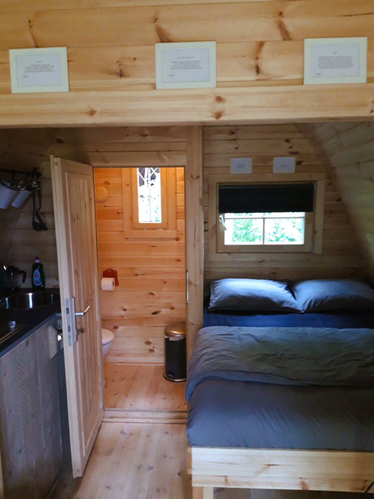 Wil je buiten zijn, maar wél met comfort? In De Smokkelaar I & II slaap je in een knusse campingpod op onze natuurcamping zie plattegrond. Je komt aan, zet je tas neer, ademt even uit… en daarna is het vooral genieten van rust, groen en het fijne Twentse buitenleven. Het zijn sfeervolle campingpods voorzien van alle gemakken. Het is zowel geschikt voor fietsers en wandelaars als ook voor een langer verblijf. Binnenin is het ontzettend knus, daarom is het ideaal voor een romantische vakantie in de natuur. Dankzij de houten rustieke afwerking aan de binnen- en buitenkant van de pod waan je jezelf in een lodge, maar dan ietsjes kleiner.